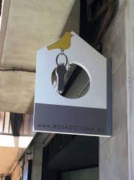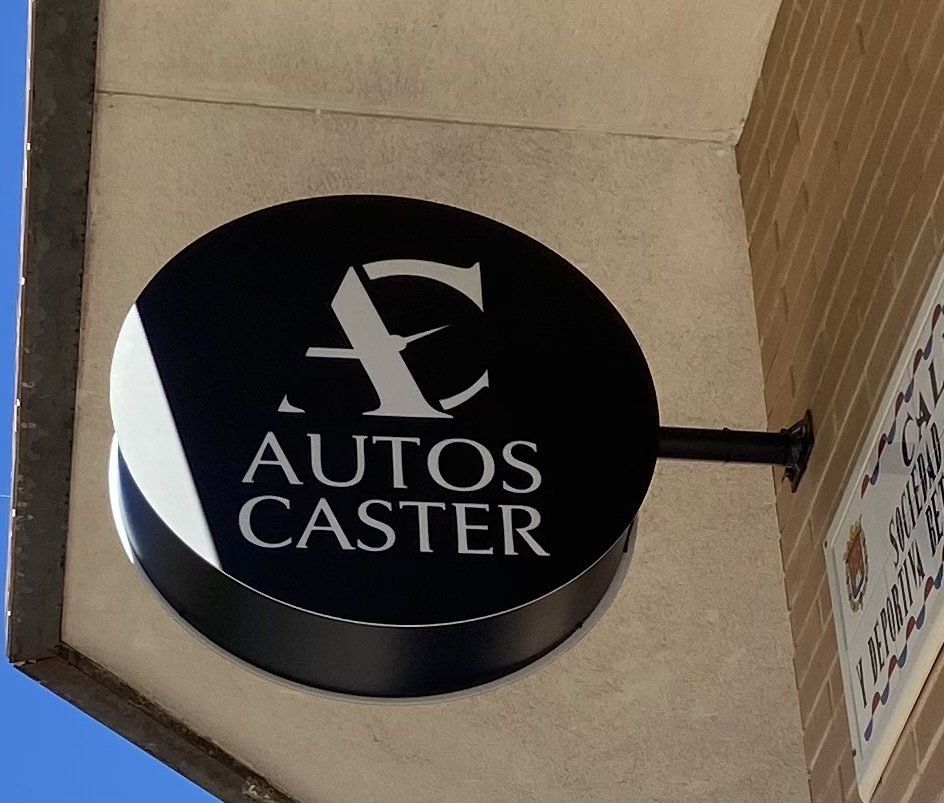 Este rótulo solo lleva una placa de metraquilato en el que va impreso su logotipo en vinilo, no lleva luz ni caja formato muy utilizado actualmente debido a su versatilidad y precio económicos. Se le suelen poner unos focos alumbrando al metraquilato.
